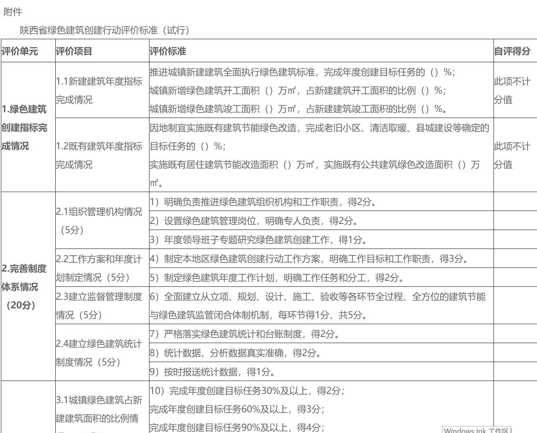 陕西省绿色建筑创建行动实施方案 (2020年--2022年) 为贯彻落实习近平生态文明思想和党的十九大精神,根据《国家发展改革委关于印发〈绿色生活创建行动总体方案〉的通知》(发改
