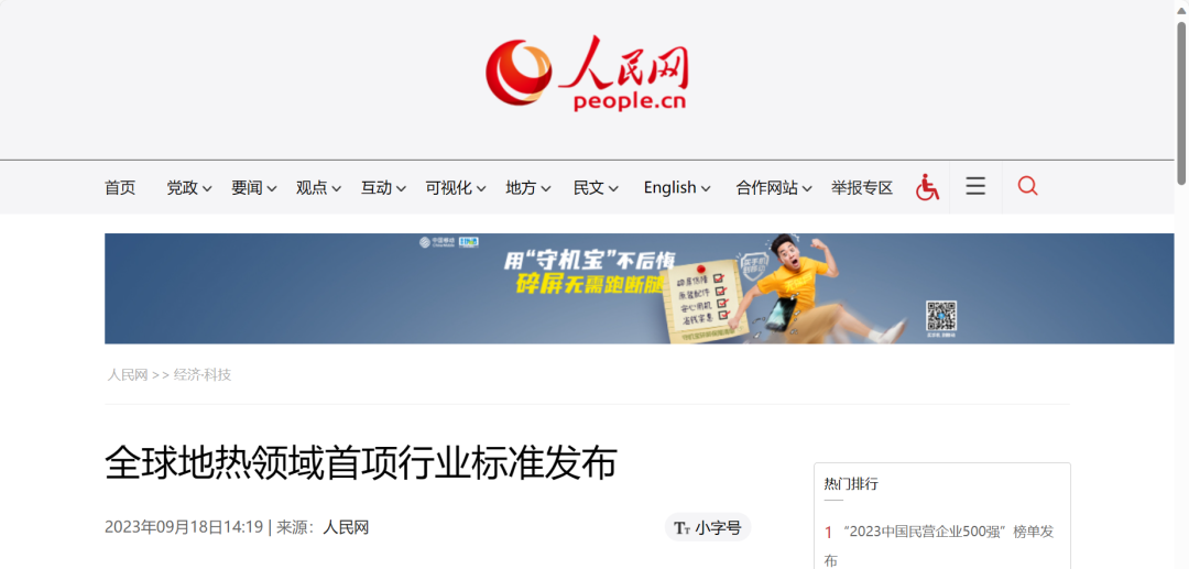 人民网北京9月18日电 (王绍绍) 9月17日,在2023年世界地热大会上,国际地热协会面向全球首次正式发布《中国地热供暖推荐做法》行业标准。这是全球地热领域发布的第一项行业标准,对推动全球地热行业的标准化、规范化发展具有重要意义。